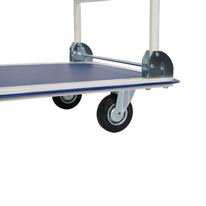 手推车配备 5 英寸橡胶轮,包括 2 个刚性脚轮和 2 个旋转脚轮,可在各种地面上轻松滑行,同时提供稳定性和减震功能。旋转轮可在狭小空间内精确操控。